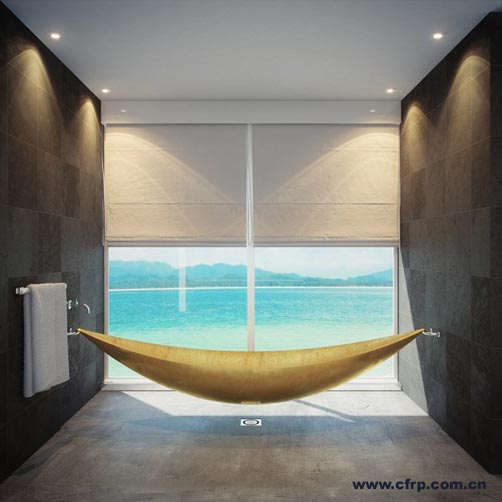 這種新型設(shè)計(jì)采用了運(yùn)用在賽車運(yùn)動(dòng)以及航天工業(yè)中的碳纖維技術(shù),讓人們體會(huì)更為科技化的沐浴享受。碳纖維的材質(zhì)讓這款浴缸更為結(jié)實(shí)難用,并在表面附著一層鉑金,更顯得在簡(jiǎn)約中透露著些許奢華。躺在這樣扁舟一樣浴缸里沐浴,你首先會(huì)想到的就是那首著名的《赤壁賦》了。