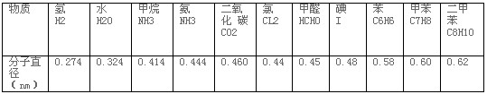 這要從三個方面來說明:第一,孔隙具有吸附勢,靠碳分子與被吸附分子的引力而形成的,孔徑越小,吸附勢越強。第二,分子運動理論:①一切物體均由分子或原子組成,分子(原子)間有間隙;②分子(原子)是處于永不停息漫無規(guī)則的熱運動狀態(tài),分子間相互碰撞很頻繁,在標(biāo)準(zhǔn)狀態(tài)下,甲醛分子的自由運動速度為450m/s,一個甲醛分子與其它分子每秒要碰撞109次/S(幾十億次);若貼近所研究表面的甲醛分子數(shù)密度,時時刻刻與遠處的甲醛分子數(shù)密度相等,則每秒有約2.7×1027個甲醛分子(約130㎏)碰在每平方米面積上;③分子間有相互作用力,一般表現(xiàn)為引力。第三,碰撞分子的直徑與活性炭纖維孔隙直徑要匹配,若分子直徑大于孔隙直徑,則分子碰活性炭纖維時,進不了孔隙而被彈回到空中;若分子直徑遠小于孔隙直徑,則分子即使碰到了孔隙,也有可能跑出來,孔徑越大,跑出來的概率也越大,使吸附率越?。划?dāng)分子直徑略小于孔徑時,分子碰到孔以后難于跑出來,即被吸附了。被吸附的分子數(shù)量多,表明其吸附能力越強。經(jīng)查實與計算,某些物質(zhì)分子的有效直徑如表1所示: 本文來自123