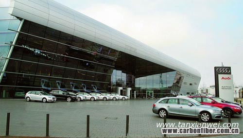 1985年,奧迪總部遷往英格爾施塔特。內卡蘇姆工廠目前組裝A6、A8、TT及R8全系。此外,這里還有一個輕質設計和實驗中心。圖中奧迪品味車苑是2005年落成的。