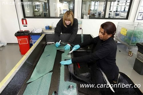 預(yù)浸料:以此種方法處理過(guò)的碳纖維氈通常稱為“預(yù)浸料”,也就是由供應(yīng)商使用熱固性液體樹(shù)脂進(jìn)行預(yù)注處理,并須在低溫環(huán)境下保存。然后,碳纖維氈要在模具中經(jīng)過(guò)層壓處理,并在壓熱器內(nèi)進(jìn)行熱壓固化。預(yù)浸料部件的制作工序十分復(fù)雜,但表面光潔度極佳(A級(jí)光潔度),所以是打造汽車外露部位的上選。