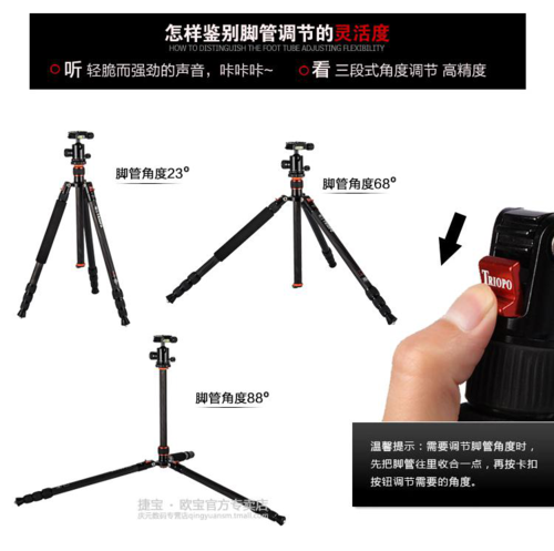 選擇三腳架首先看重的便是產(chǎn)品的質(zhì)量,現(xiàn)在市場上的三腳架產(chǎn)品琳瑯滿目,但是質(zhì)量卻是良莠不齊,而且價(jià)格也是高低不一,一旦不小心,就可能會(huì)選擇到質(zhì)量不好的產(chǎn)品,影響成像效果。隨著捷寶三腳架的上市也讓消費(fèi)者解決了購買三腳架的難題,可以輕松選擇到自己喜歡的產(chǎn)品。捷寶三腳架現(xiàn)在已經(jīng)有十余個(gè)系列產(chǎn)品,包括碳纖維、鋁合金、塑料等多種材質(zhì)產(chǎn)品,其中最流行的便是捷寶碳纖維三腳架。