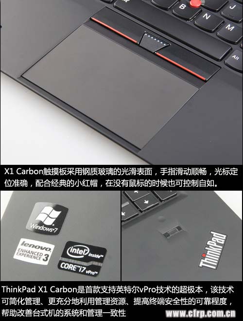 當(dāng)然作為一款專(zhuān)門(mén)面向商務(wù)用戶的產(chǎn)品,英特爾vPro是必不可少的一部分,該技術(shù)可簡(jiǎn)化管理、更充分地利用管理資源、提高終端安全性的可靠程度,幫助改善臺(tái)式機(jī)的系統(tǒng)和管理一致性。ThinkPad X1 Carbon是第一款支持英特爾vPro技術(shù)的超極本,所以我們把它定義為首款專(zhuān)門(mén)針對(duì)商務(wù)用戶打造的超極本,那么接下來(lái)我們就一起來(lái)詳細(xì)了解一下ThinkPad X1 Carbon。