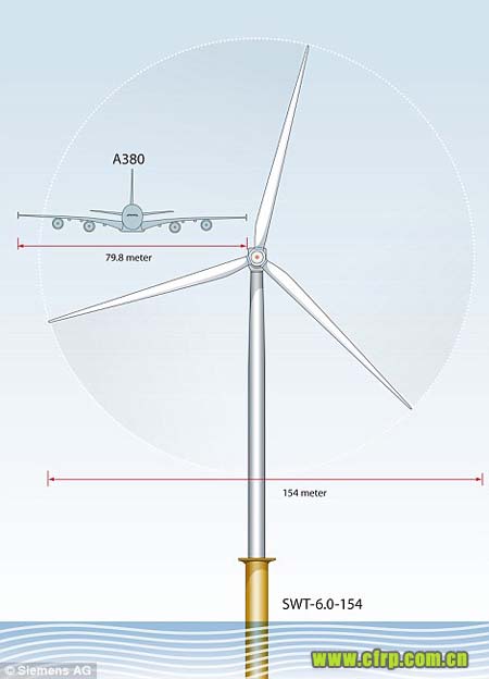 風(fēng)車(chē)能做到多大?英國(guó)《每日郵報(bào)》今天的一篇報(bào)道給出了答案:75米,這還只是一片扇葉的長(zhǎng)度,接近當(dāng)今最大客機(jī)A380的翼展長(zhǎng)度。