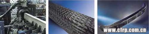 由SGL Kumpers負(fù)責(zé)成型。左起分別為August Herzog公司的編織機、編織物預(yù)成型坯、RTM成型品。