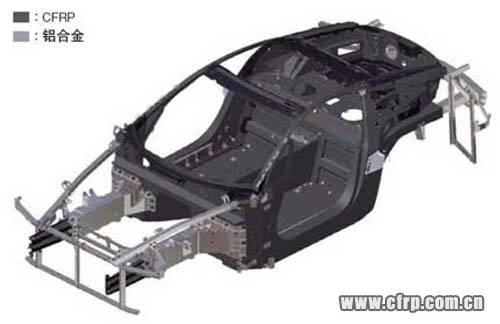 日本廠商方面,豐田的雷克薩斯LFA是首款CFRP車。該車最初采用鋁(Al)合金設(shè)計,但中途改成了CFRP設(shè)計,駕駛室由CFRP制成,底盤部分由鋁合金制成。白車身重量為193kg,比使用鋁合金時減輕了約100kg(圖10)。