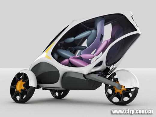 Ionut Predescu是一位羅馬尼亞的工業(yè)設計師,下面這組作品是他設計的一部概念三輪汽車,全車使用電力驅(qū)動,碳纖維的框架,透明的聚碳酸酯太陽能車頂棚在空閑時可以隨時吸取太陽能充電。