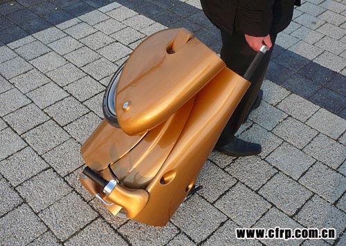 同時(shí),設(shè)計(jì)人員還考慮到了衛(wèi)生問題,讓摩托車折疊后完全變成一個(gè)類似手提箱的物體,這樣使用者在拖行過程中就不會(huì)接觸到摩托車車身較臟的部位。