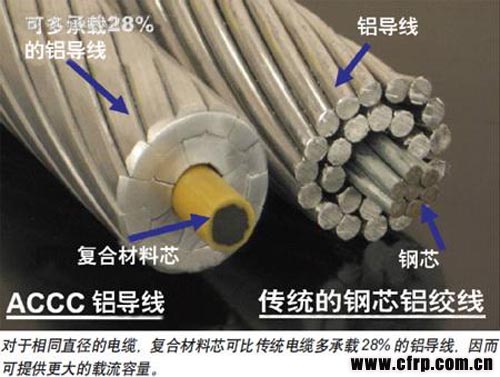 我國(guó)輸電電網(wǎng)架設(shè)廣泛采用的ACSR,在超負(fù)荷運(yùn)行時(shí)發(fā)生電纜下垂而影響生產(chǎn)用電安全。據(jù)統(tǒng)計(jì),超長(zhǎng)距離的線路輸電產(chǎn)生大量的電阻損耗,約占總電能損耗的15%。采用以高性能環(huán)氧樹(shù)脂制造的碳纖復(fù)合芯電纜(ACCC)可以減少電纜弛度,提高輸電效率。 copyright 123456