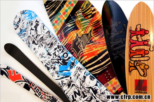德國LAMILUX公司作為專業(yè)的纖維增強材料生產(chǎn)商,以新開發(fā)的纖維增強產(chǎn)品為滑雪板等運動板的產(chǎn)品性能和生產(chǎn)制造工藝帶來了革命性變化。LAMIsport X-treme是由碳纖維或玻璃纖維復(fù)合而成的高科技材料,它構(gòu)成了滑雪板緊密壓合的三明治結(jié)構(gòu)板身的面層(上表面和下表面)。它不僅可以為這些運動用品降低15%的重量,而且還提供優(yōu)異的抗紫外線性能、高強度和剛性。此外,可直接在面層做噴涂、更少的復(fù)合層數(shù)確保了生產(chǎn)過程的高效率。