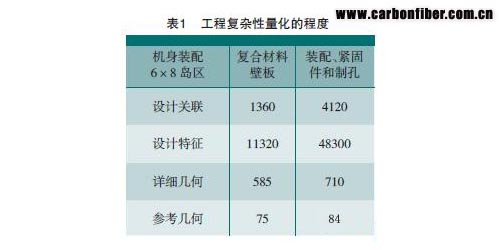 事實(shí)上,我們嘗試著量化大型航空結(jié)構(gòu)復(fù)合材料壁板的復(fù)雜性。舉個(gè)例子,對(duì)于一個(gè)由桁條和框分割的包含6×8 個(gè)島區(qū)的典型商用飛機(jī)的的航空壁板,得到如表1 所示的一組統(tǒng)計(jì)數(shù)字。創(chuàng)建了幾何參考并且保留在CAD 環(huán)境中。細(xì)節(jié)的幾何元素手動(dòng)創(chuàng)建但沒有在三維CAD 環(huán)境中提交并確認(rèn)。除了幾何數(shù)據(jù),對(duì)于復(fù)合材料蒙皮有11320 個(gè)非幾何特征,對(duì)于裝配件、緊固件、孔等有48300 個(gè)非幾何特征。這些特征不屬于三維CAD 或者PLM 的一部分。另外,這些關(guān)系沒有在三維CAD 或者PLM 中捕獲,也沒有在設(shè)計(jì)意圖中體現(xiàn)。在CAD 和PLM 軟件中有超過(guò)90% 的數(shù)據(jù)沒有捕獲并且沒有有效管理。 本文來(lái)自123