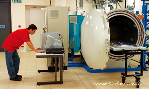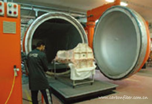 預浸料/熱壓罐成型工藝的優(yōu)點是:施工簡便,對工人的技能要求不高,生產(chǎn)效率高,制品質(zhì)量穩(wěn)定且強度高,因此,該工藝已成為汽車結構件的主流生產(chǎn)技術。需要說明的是,在熱壓罐中固化成型的制品與在固化爐中成型的制品相比,其致密性更高。這是因為熱壓罐可同時加熱加壓,其施加的壓力通常為2~3個大氣壓,而固化爐則不能施壓,這使得在熱壓罐中成型的制品具有更高的致密度,其強度性能更好,因而更適合于主結構件的成型。對于次結構件而言,固化爐成型完全可滿足其強度和質(zhì)量要求。當然,熱壓罐的成本幾乎為固化爐的2~3倍。