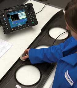 飛機(jī)制造商、維修服務(wù)商、以及航空公司近期均開始使用超聲相控陣技術(shù)確保飛機(jī)復(fù)合材料組件的加工質(zhì)量。其中,由碳纖維增強(qiáng)聚合物(CFRP)材料制成的組件具有多種形狀及不同厚度,因此,如何對這種材料進(jìn)行檢測成為一項(xiàng)難題。雖然對該類圓角材料的檢測目前尚新,但隨著在飛機(jī)構(gòu)造中越來越多地使用CFRP疊層板,這項(xiàng)檢測正變得越來越重要。