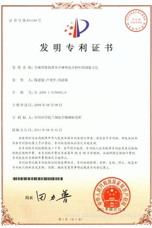 中國科學(xué)院蘭州化學(xué)物理研究所先進(jìn)潤滑與防護(hù)材料研發(fā)中心磨損和表面工程組研發(fā)出含碳纖維的聚苯并咪唑復(fù)合材料制備新方法,該項(xiàng)技術(shù)于近日獲得國家發(fā)明專利授權(quán)。(含碳纖維的聚苯并咪唑復(fù)合材料的制備方法,專利號:200810150663.6)