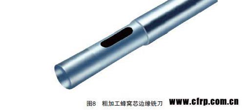如HSS Hollow CoreCutters刀具,該款刀具被設計為垂直切斷蜂窩芯的晶格,產(chǎn)生一個蜂窩芯未被壓倒的、整齊的邊緣。蜂窩邊緣經(jīng)過整齊的切割后,再使用一般切割蜂窩的無齒銑刀,將蜂窩自根部割斷,徹底分離,此刀專用于在蜂窩上加工出深槽,并能高效率地去除大余量及切割出整齊的蜂窩芯邊緣。如圖8所示。還有加工飛機壁板的槽銑刀,這種組合式刀具是用于飛機內(nèi)飾面板蜂窩夾層的開槽,以便于灌注混合體,加固板的邊緣。刀具帶PCD 切割刃,可嵌以金剛石或高速鋼材料,以螺絲固定。如圖9所示。 123456