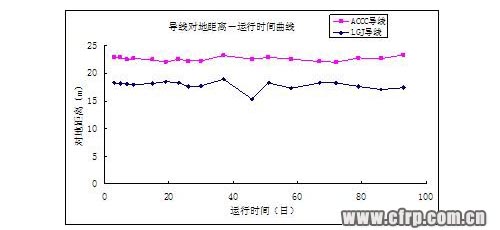 碳纖維導線(ACCC)與鋼芯鋁絞線(LGJ)的對地距離變化曲線