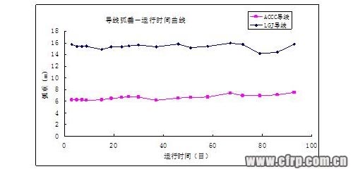 碳纖維導線(ACCC)與鋼芯鋁絞線(LGJ)的弧垂變化曲線