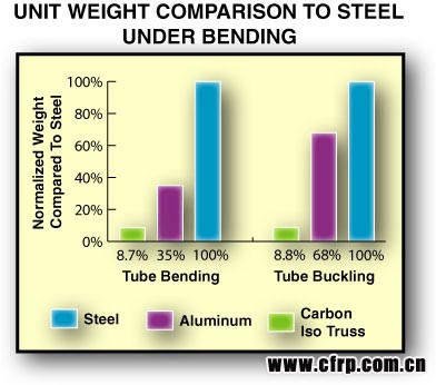 絕緣管束結(jié)構(gòu)的功能就跟任何壁厚均勻的固體管一樣,但由于耗材較少,其重量只占到固體管的很小的比例。當(dāng)在同樣負(fù)載的情況下,它比鋁材管的重量少二十五個(gè)百分比,比鋼材管少百分之九。