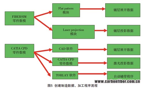 復(fù)合材料零件有其自身的材料、結(jié)構(gòu)以及工藝特點,與一般的金屬制件不同,復(fù)合材料零件除了要設(shè)計表達形位、尺寸信息,還要設(shè)計表達鋪層輪廓、角度以及芯材等復(fù)合材料特有的信息。前期基于二位圖紙或CATIA機加模塊建立的三維數(shù)模,無法生成鋪層數(shù)據(jù),無法適應(yīng)數(shù)字化設(shè)備的應(yīng)用,不利于數(shù)字化技術(shù)的發(fā)展。所以應(yīng)采用先進的復(fù)合材料專用設(shè)計、工藝軟件進行建模和三維標(biāo)注,為復(fù)合材料數(shù)字化技術(shù)的應(yīng)用搭建了軟件平臺。目前國外比較成熟、比較常用的專用軟件為FIBERSIM 和CATIACPD 以及與之配套的輔助軟件。